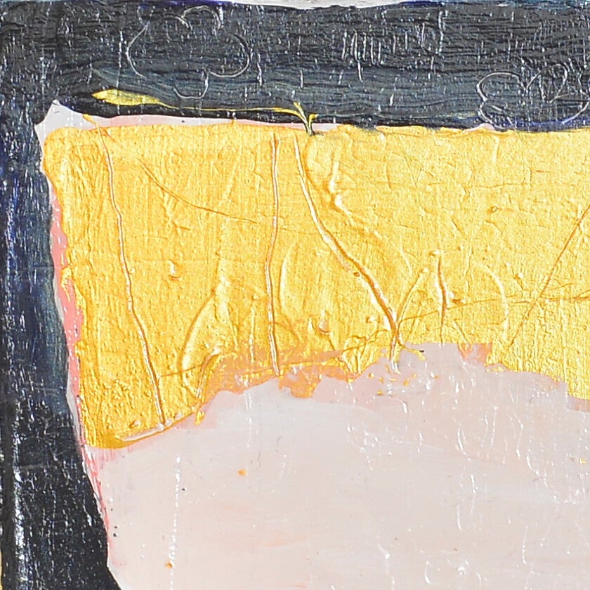 Gemengde techniek op diep houten paneel/blok, dat zowel aan de muur kan worden gehangen, als staand kan worden gebruikt.