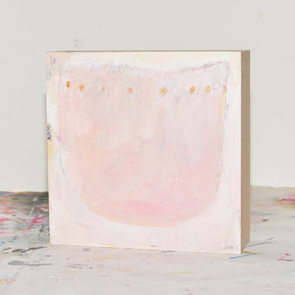 Gemengde techniek op diep houten paneel/blok, dat zowel aan de muur kan worden gehangen, als staand kan worden gebruikt.